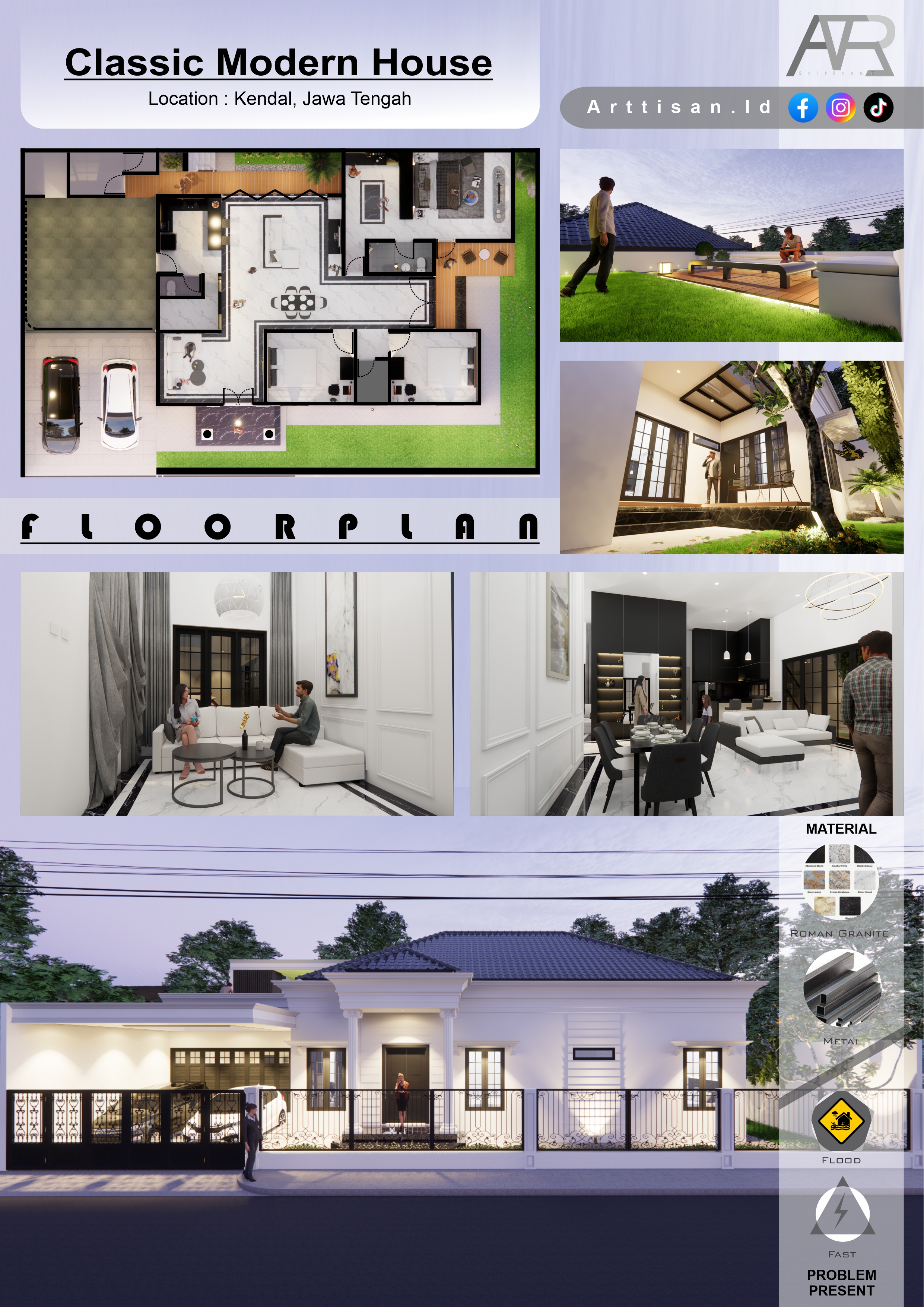 Perancangan hunian yang memperhatikan fungsi ruang, proporsi, dan karakter visual.
